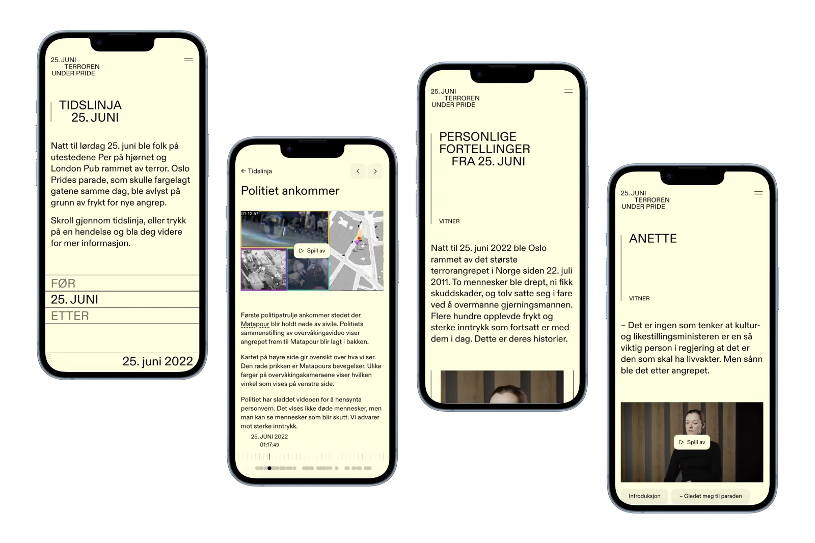 Nettstedet er laget for å spre kunnskap om terrorangrepet under Pride i 2022 gjennom tidslinje og utdanningsopplegg. Min rolle i prosjektet var å implementere web applikasjonen med Next.js, Sanity CMS og Mux (for videohåndtering).